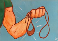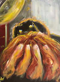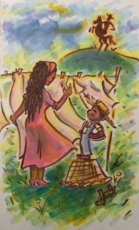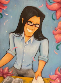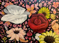 Artist’s note: This piece reminds me of rebirth with the springtime flowers and a baby’s hand catching a “helicopter” seed.